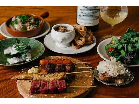 日本の伝統×ヨーロッパの感性が詰まった、魚や肉、野菜の串焼きにヨーロッパのエッセンスを加えた創作バル。